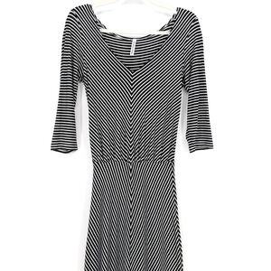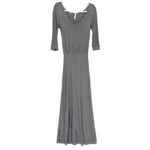 Black Chevron Striped Maximalist Casual V Neck Parisian Maxi Dress Small
