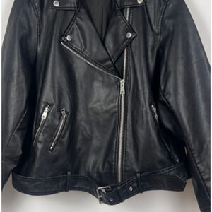 Levi's Women's 2X Black Faux Leather Moto Biker Jacket Belted Full Zip
