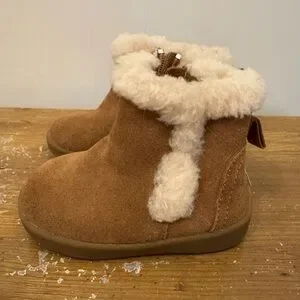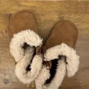 Tan boots featuring soft cream fur lining. Ideal for chilly days. Worn twice, size says 4/5