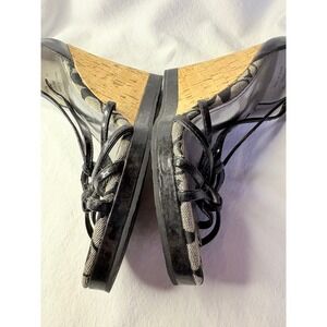 Coach Signature C Wedge Sandals Black Patent Cork Wedge Heels Size 7