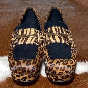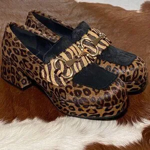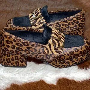 JEFFREY CAMPBELL Student Loafers Calf Hair Platform Leopard Cheetah Shoes 7.5