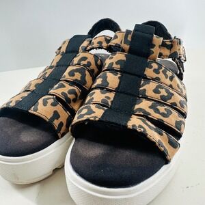 TOMS Leopard Print Platform Sandals Lug Sole Strappy Slides Women's Size 6