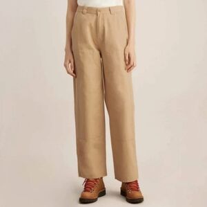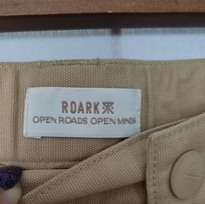 Roark Passport Pants in Camel size 29 nwt hot take on a traditional Carpenter pant with a bit more relaxed flare. Featuring a cargo side pocket and double-wide belt loops so you can rock your favorite chunky belt. Because everyone needs a trusty Carpenter pant in their wardrobe. Wide Leg, Brushed Canvas, reinforced knee, utility with drop in cell phone pocket 100% cotton