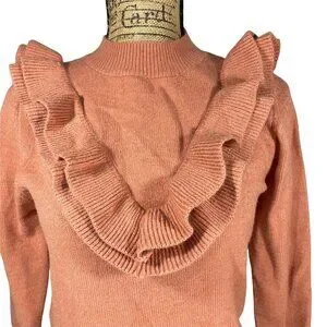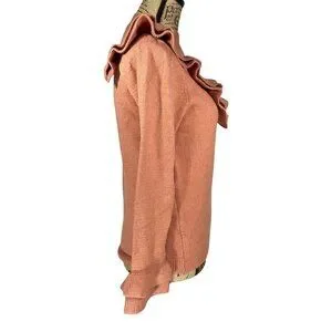 Lipslide Knit Sweater Ruffle Neck and sleeves Ribbed Trim in Pink Size Small