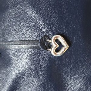Chic dark blue leather bag. Features a charming heart accent. Perfect for versatile use.