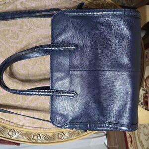 Brighton Dark Blue Leather Shoulder Bag Raven Soft Satchel with Heart Accent