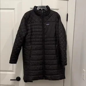 Women’s Patagonia black Radalie. Insulated parka keeps you warm, cozy and comfortable in sporty style. Mid thigh length. Size XXL (SIZE UNAVAILABLE ONLINE). #Reposh