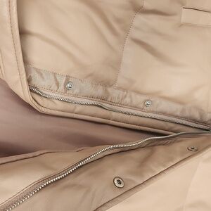 Chic beige puffer vest by Abercrombie & Fitch. Features a warm design with practical pockets. Vegan Leather. Pre-Loved.. Good Condition. Zip up and Snap Closure.