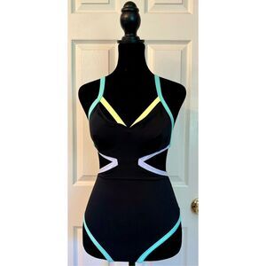 NWOT Victoria’s Secret Black + Neon Cutout One Piece Swimsuit Women's