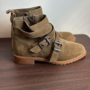 Bleeker & Bond Woman’s Kelsey Ankle Bootie Side Zip Khaki Suede Sz 6