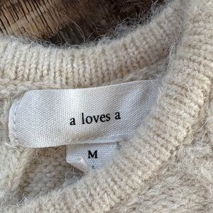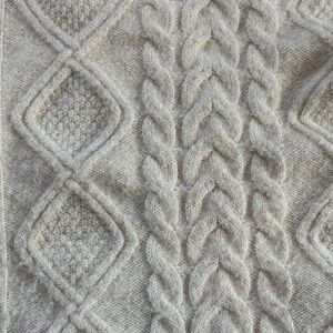 Stay cozy and stylish with this chic cream cable knit sweater. Perfect for layering in cooler weather. Pilling on the sweater. Medium.