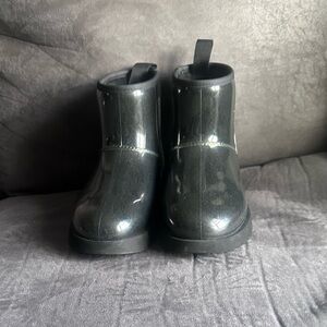 Glossy black UGG boots for kids. Waterproof and cozy. Ideal for rainy days.