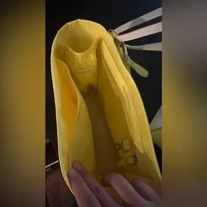 Yellow inside comes out and has plenty of organization and storage with zippers!