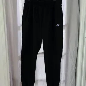 Comfortable and stylish, these Champion men's jogger pants are perfect for everyday wear. The black color adds a classic touch to any outfit. excellent condition, pockets, elastic waist. size XL. 31 inches from crotch to ankle.