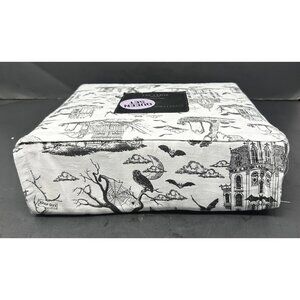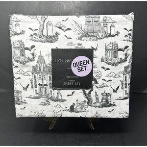CYNTHIA ROWLEY QUEEN SHEET SET Halloween Toile Haunted House Cemetery Bats NEW