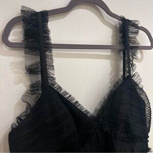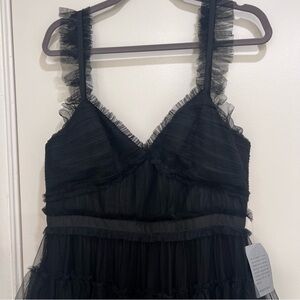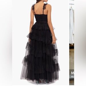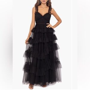 Betsy & Adam Tiered Ruffle Tulle Gown Black