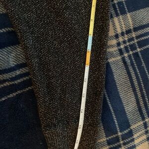 Chic black top with a shimmering finish. Features a stylish V-neck. Has a zipper in the back but this will fit over head. So no need to use zipper. Measurements in pics. Black with silver sparkle throughout. Perfect for holidays.