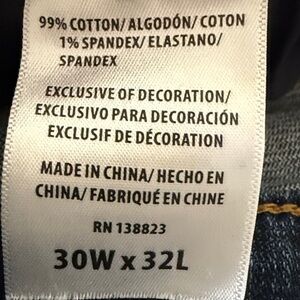 boot cut jeans, dark blue, worn twice. Shows "short", my daughter is 5'6" with long legs so they're not petite in our opinion. Purchased at Boot Barn in Central Texas.