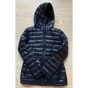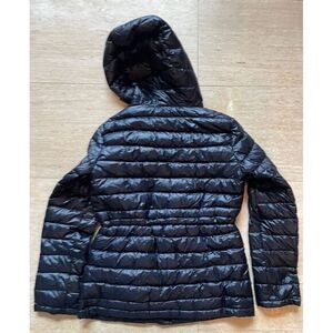 Keywords: DKNY, puffer jacket, quilted coat, packable jacket, winter coat, hooded jacket, lightweight jacket, black jacket, down jacket, travel jacket, small size jacket