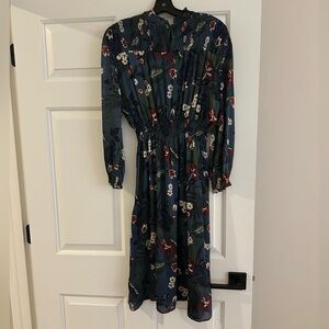 Zara Navy Floral Long Sleeve Floral Print Dress