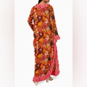 CeliaB Gongga Orange Floral Fringe Trim Long Sleeve Maxi Dress. Size M, new with tags. Sold out everywhere, rare htf style.