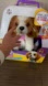 New Interactive plush puppy toy with realistic sounds and actions. Features brown and white fur. Comes with a purple collar and accessories.