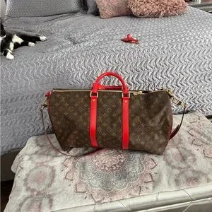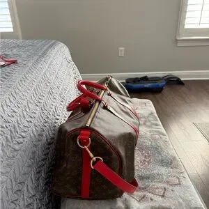 Louis Vuitton “Keepall” Duffle with Mono +Red Women's Bag- RARE LIMITED EDITION
