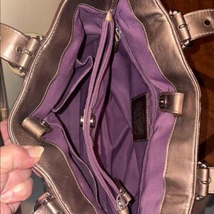 Coach NYE bag SoHo north south shoulder bag leather metallic pewter/bronze