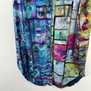 URU Women’s Dark Multi Watercolor Abstract Sleeveless Button Front Tank Blouse