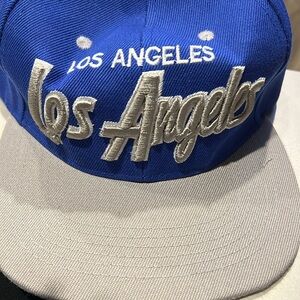 Stylish blue and gray cap with 'Los Angeles' embroidery.