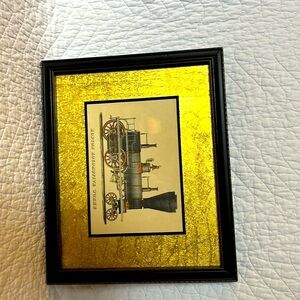 Image of an elevation view of the side of a steam locomotive, with a 4-4-0 wheel arrangement, tender, a red flag on the pilot, and the label "Boston" on the boiler. Inner frame 19.4 cm x 25 cm.