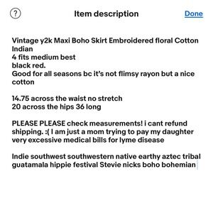 Vintage y2k Maxi Boho Skirt Embroidered floral Cotton Indian