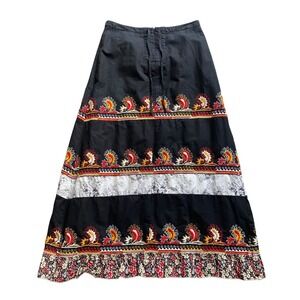 VTG Maxi Skirt Embroidered Floral Black Festival Indie Fairy Hippie Boho Medium