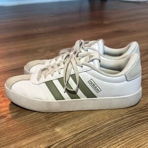 Adidas VL court 3.0 sneakers in white with green stripes. Womens size 10. They have been worn a little (maybe 10ish times) and still have a lot of life in them.