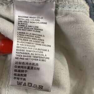 Size 29. 100% Cotton. Inseam 30 inches. Waist 16 inches measured flat. Rise 12 inches. Small hole on the top of the back pocket shown in picture. Light wear on the back hems. Good used condition!