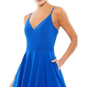 Size 0 Mac Duggal Royal Blue Classic A-Line V-Neck Ballgown Prom Dress