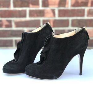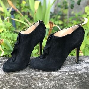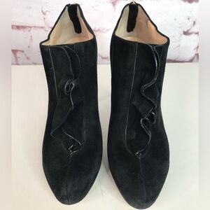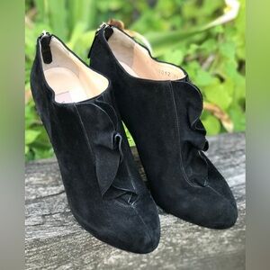 VALENTINO GARAVANI Suede Ruffle Ankle Booties Black Suede Heels SIZE 39 EU