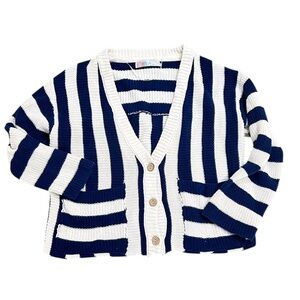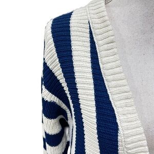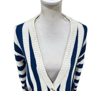Free People navy Blue & Cream high Tide Striped Cardigan oversized cotton sz xs