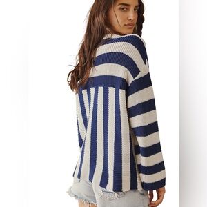 Free people beach “high tide cardi” cotton blend oversized navy & cream striped cardigan. Perfect for layering. Nautical vibe. Beachy. Nantucket. Preppy. Euc