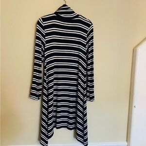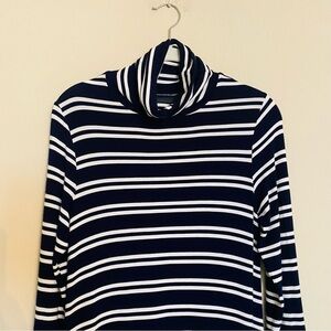 Maeve Anthropologie Navy Blue White Striped Mock Turtleneck Swing Dress Size Small