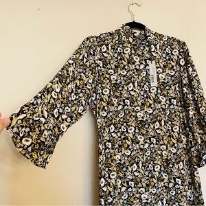 Rolla's 3/4 sleeve mini dress featuring ruffle cuffs and neckline in a vintage-inspired floral print. Cute bell sleeves and breezy silhouette. New with tags and never worn. This dress would also transition well into fall and look cute with tights and boots. This effortlessly chic dress is out of stock everywhere. Back zipper closure.