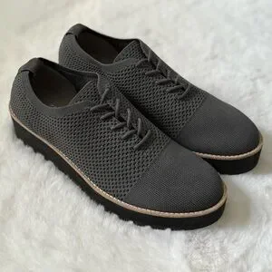 EILEEN FISHER 10 Eddy Knit Platform Oxford Loafers in Graphite Grey • Eddy 2