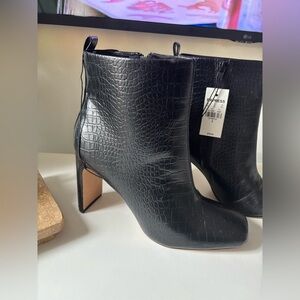 Express BRAND NEW!! Black Croc-Patterned Ankle Booties