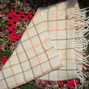 Awesome scarf with fringe is by Calvin Klein is acrylic and measures 11" wide x 70" long.