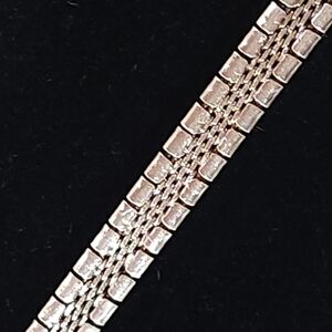 Sterling Silver Omega Chain Design w/Diagonal Diamond Cuts Bracelet