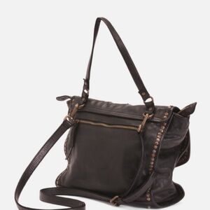 PLATANIA MADE IN ITALY LEATHER CIRCLE STUDS FLAP OVER SATCHEL CROSSBODY no damage like new from non-smoking