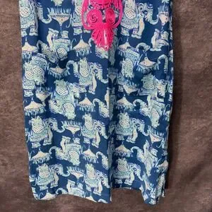 Keywords: Lilly Pulitzer, elephant print, tunic dress, sleeveless, v neck, embroidered neckline, resortwear, summer dress, vacation, preppy, bright, colorful, kids