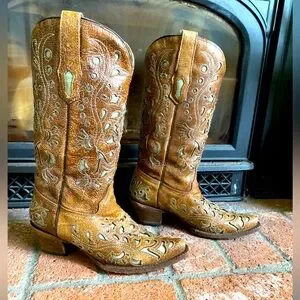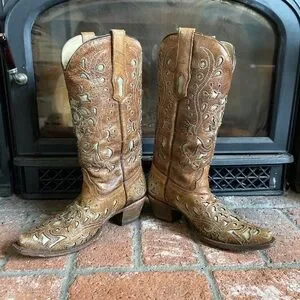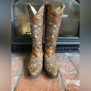 CORRAL Cowboy Boots Brown Leather Tan Inlay Detailing SZ 8 Western Cowgirl