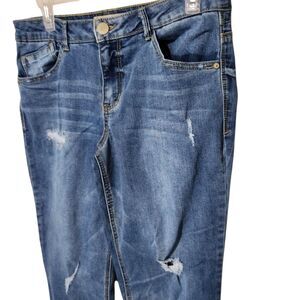 Democracy Crop Pants Size 10 Blue Embroidered Raw Hem