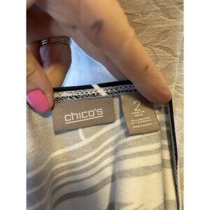 This listing is for Chico's Maxi Dress Size 2 (L) Blue High-Lo Sleeveless Dress Knit Stretch Print